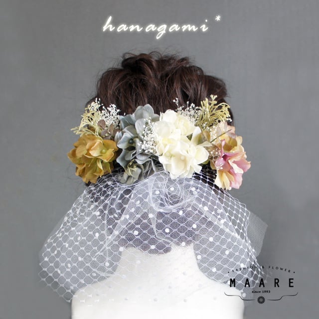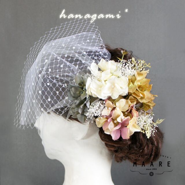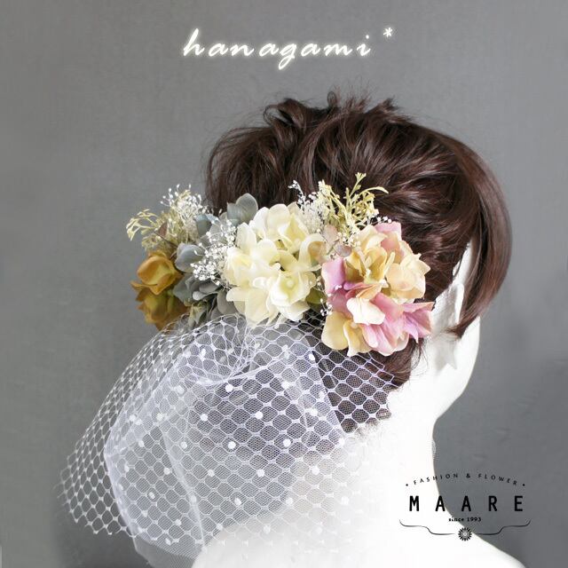 アンティーク風の色合いの紫陽花からカスミソウがちらりと覗く、素敵なヘッドドレスができました♪*