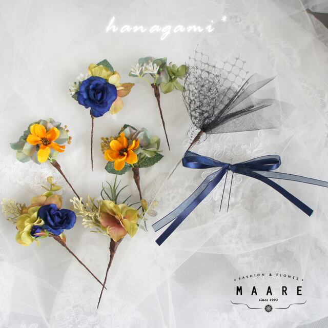 お花はパーツごとに分かれていますので、まとめて挿したり、バラバラにつけたり、少なめにちょこっと使いしてみたり...♪