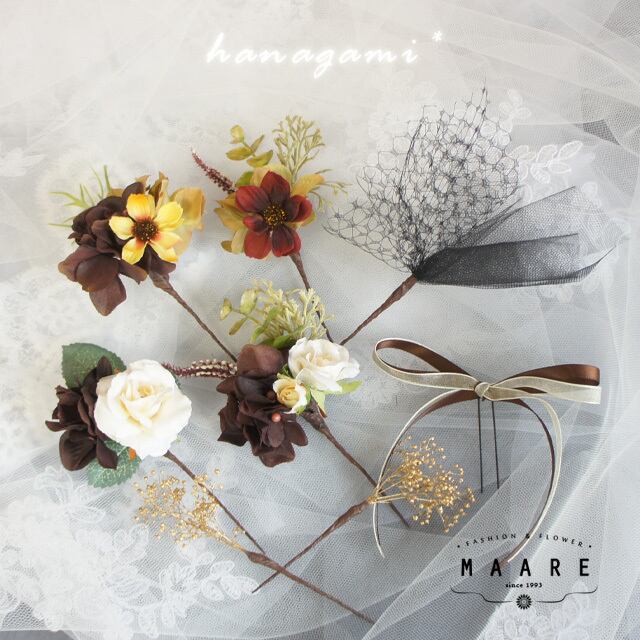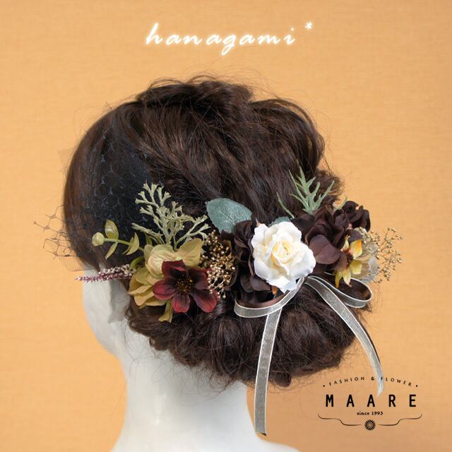 **darkbrown & natural** リーフとお花のヘッドドレス