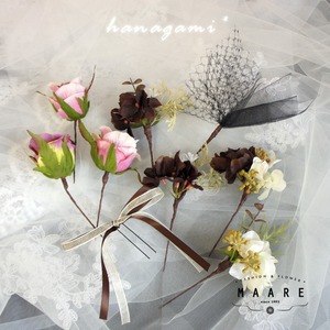 ピンの部分は曲げて使用することもできますので、お花の角度などを調整することができます。