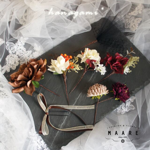 ピンの部分は曲げて使用することもできますので、お花の角度などを調整することができます。
