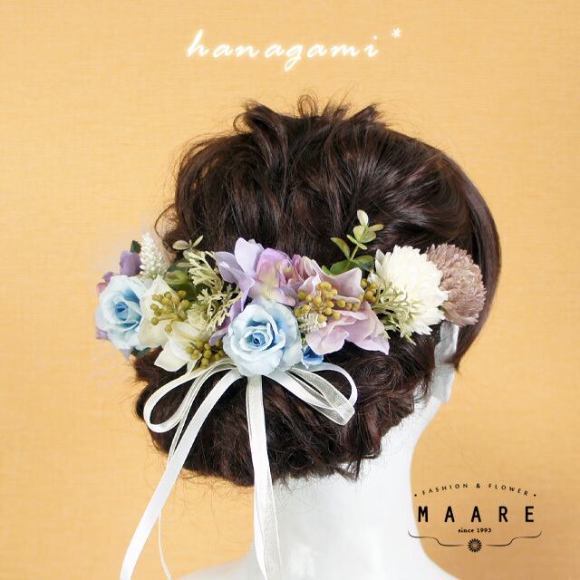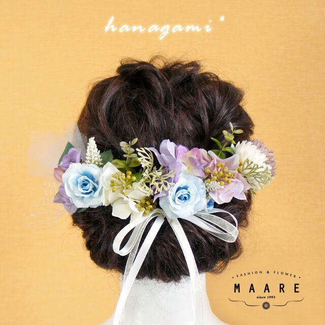 ブルー・ピンク・紫の淡いグラデーションの落ち着いた色合いのヘッドドレスです♪*