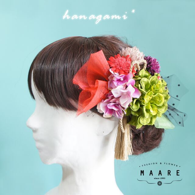 さらに、チュールやリボン、タッセルを添えてヘアスタイルを華やかに演出**