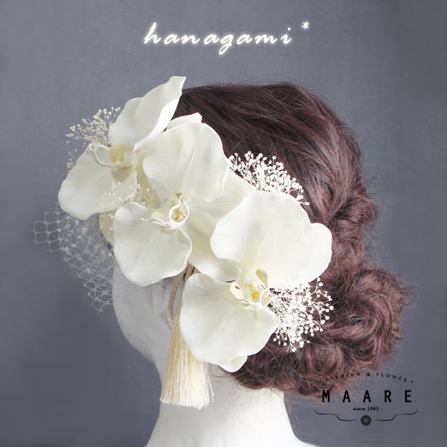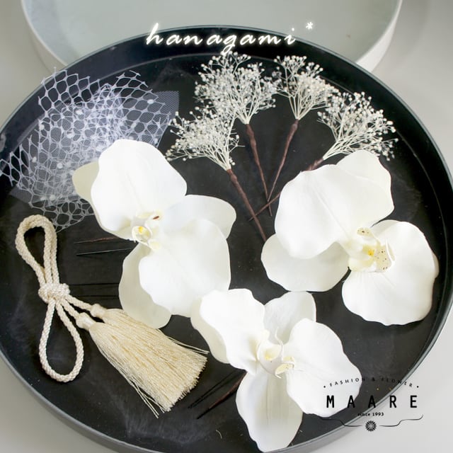 - antique - 胡蝶蘭とカスミソウの髪飾り