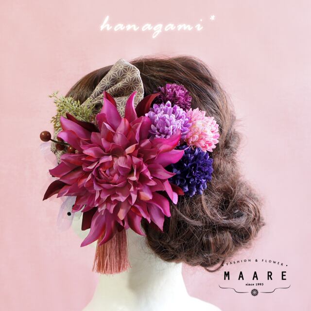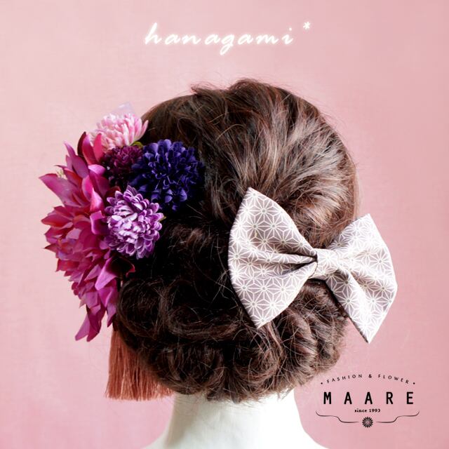 チュール、和柄リボン&タッセルを添えてヘアスタイルを華やかに演出**