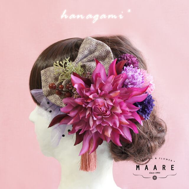 **pink dahlia**ダリアとリボンの髪飾り