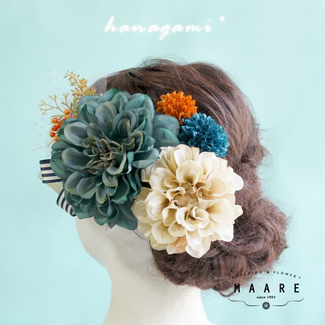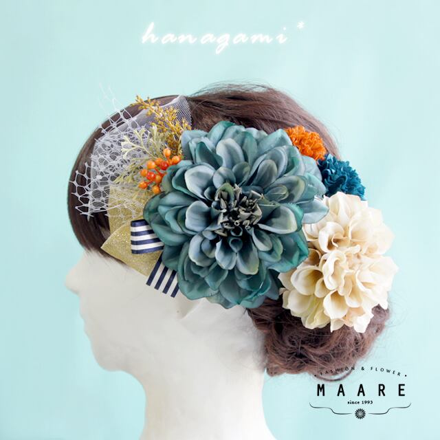 **antique blue**2種のダリアの髪飾り
