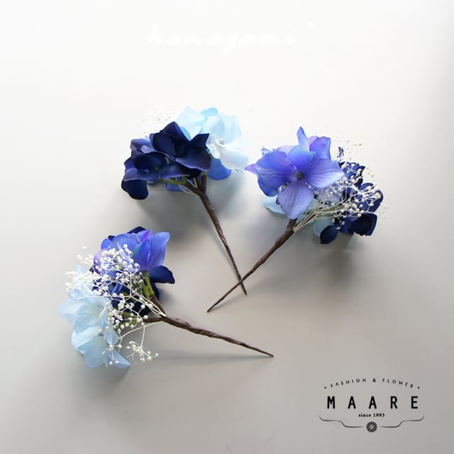 ブルーの紫陽花からカスミソウがちらりと覗く、素敵なヘッドドレスができました♪*