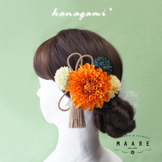 ダリアとマムの髪飾り-オレンジ-