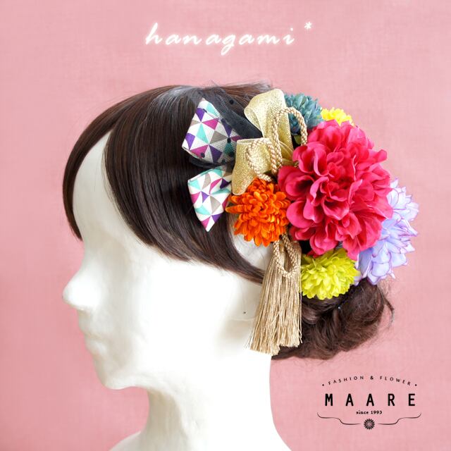 **pink colorful**2種ダリアの髪飾り