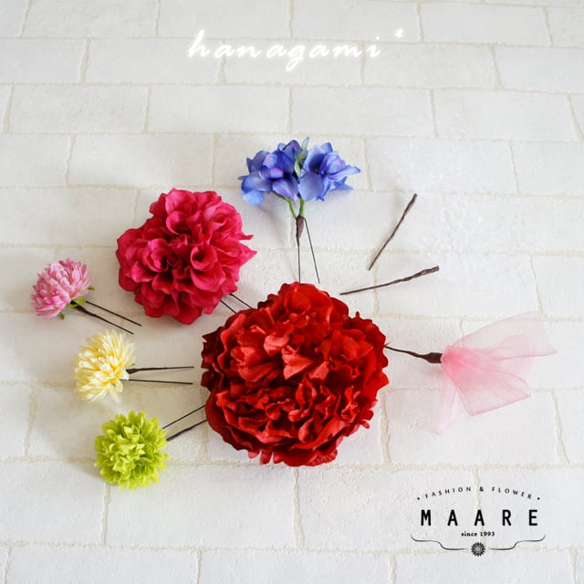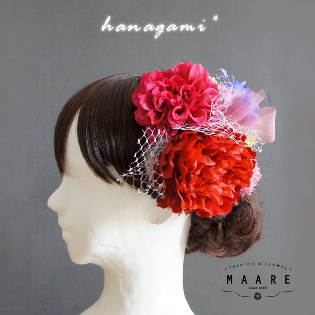 *- bo ta n - * 大きな赤い牡丹とチュールの髪飾り